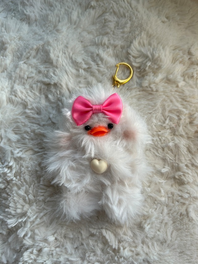 大きなピンクリボンのあひるちゃんです。 毛足が長いふわふわのモールを使用しています。 かばんなどに取り付けられるキーホルダー付きです。 サイズ:約8〜10cm *【MORU DOLL】はおひとり様2点までご購入いただけます。 3点以上お買い上げいただいた場合、キャンセルとさせていただきますのでご注意ください。 *パーツの変更はできませんのでご了承ください。