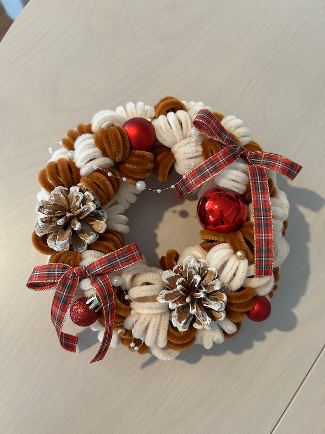 ベージュ×ブラウン×レッドのリース(中)