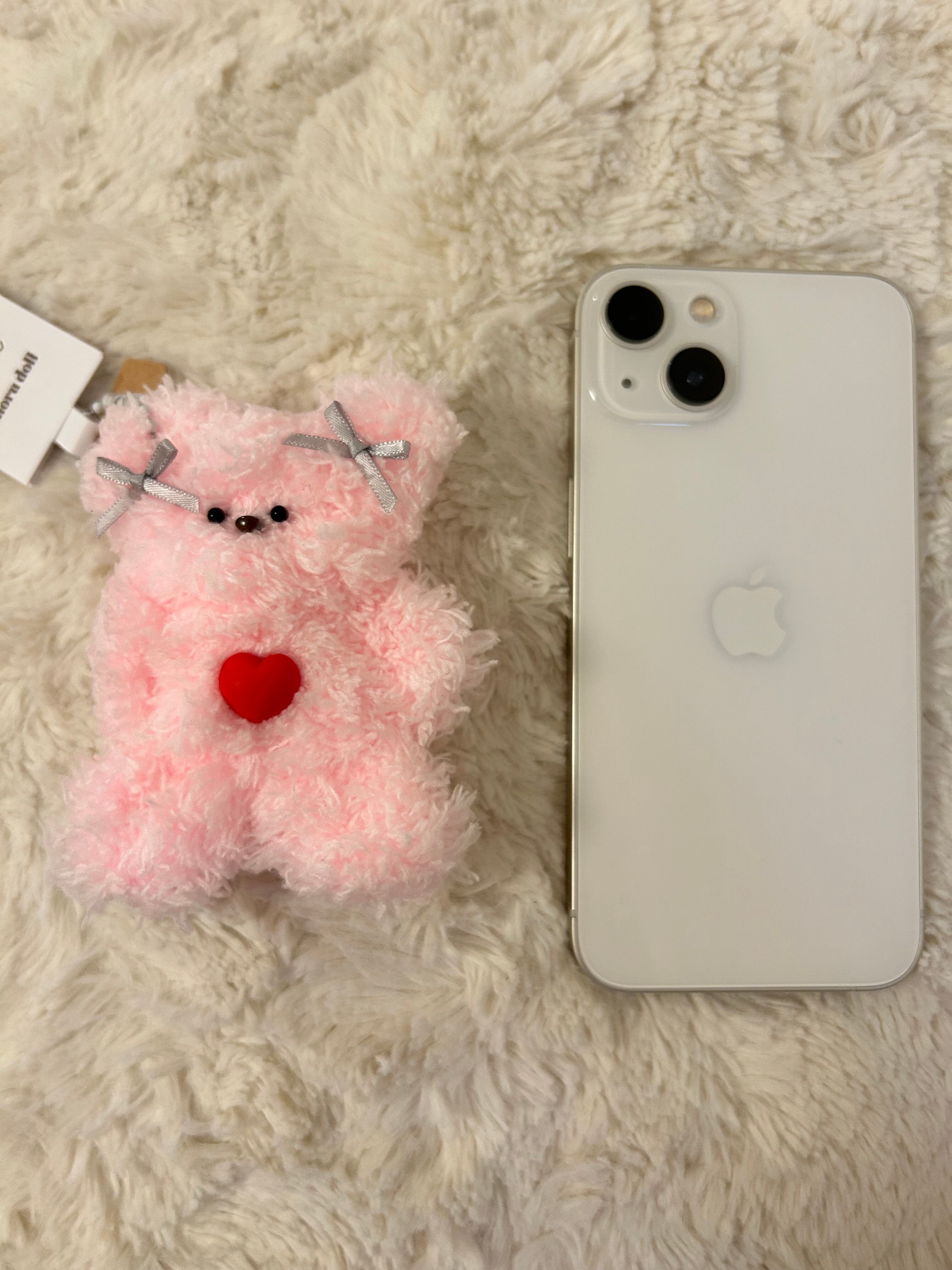 赤いハートがラブリーなくまちゃんです。 かばんなどに取り付けられるキーホルダー付きです。 *パーツの変更はできませんのでご了承ください。