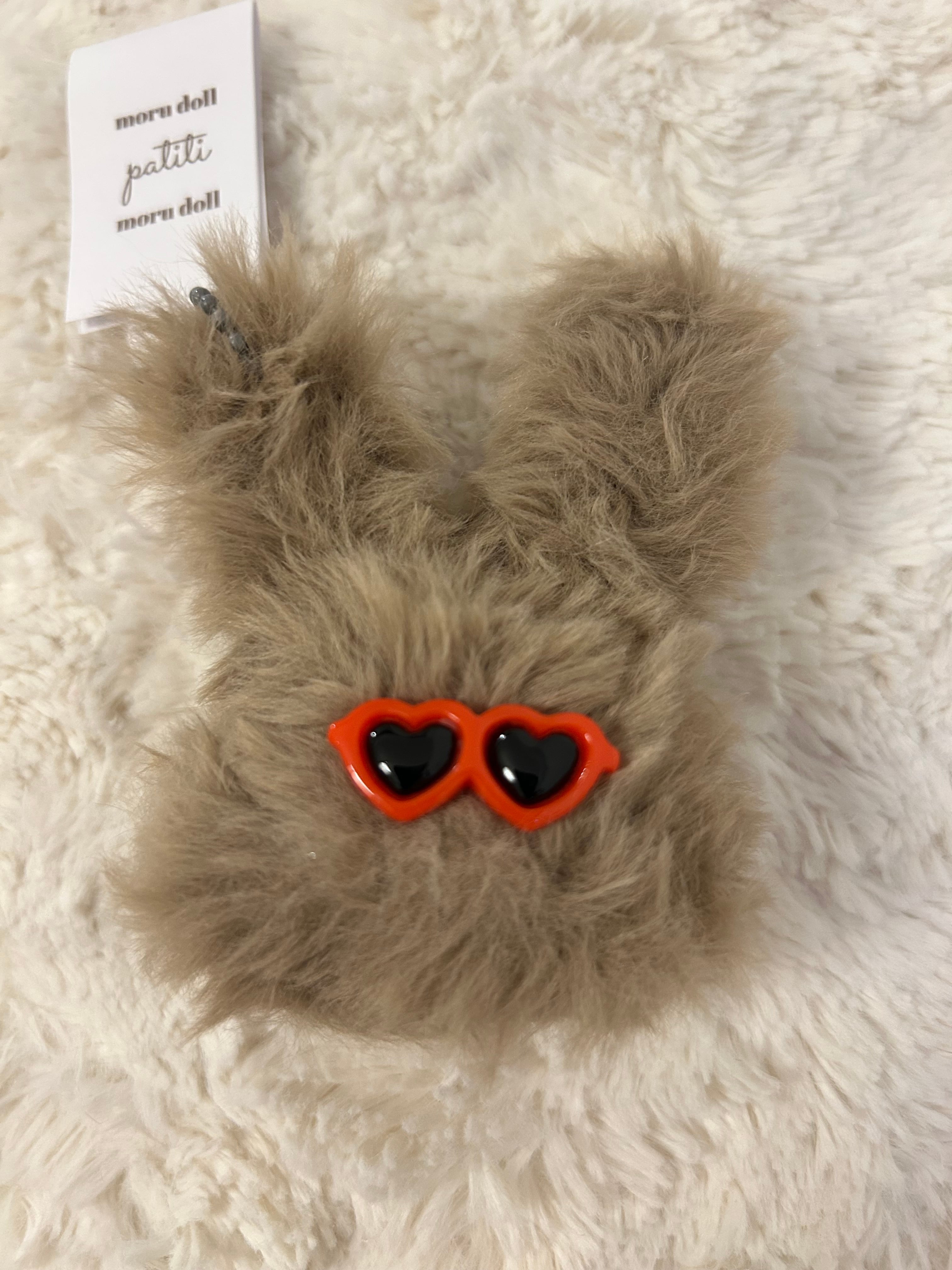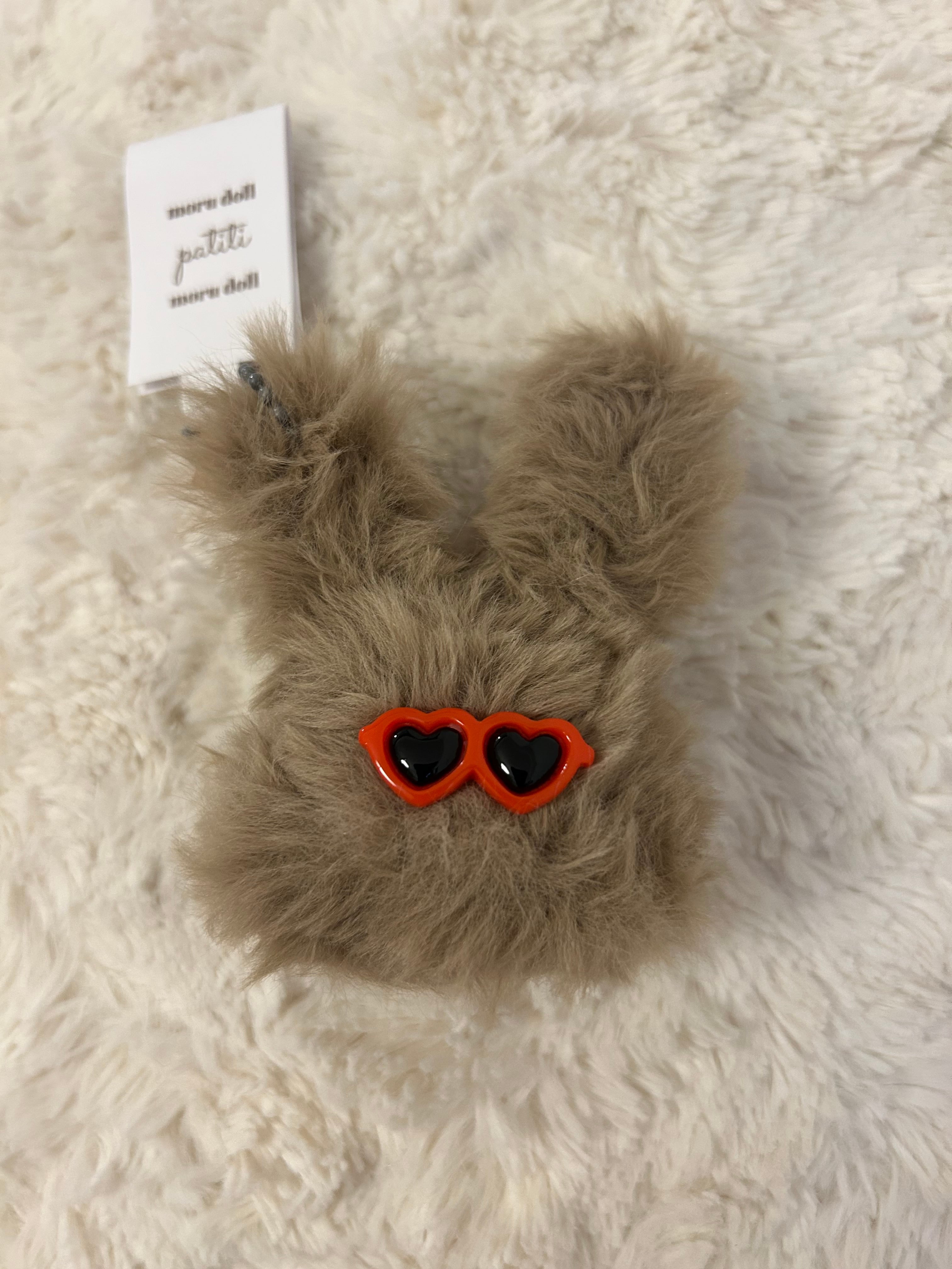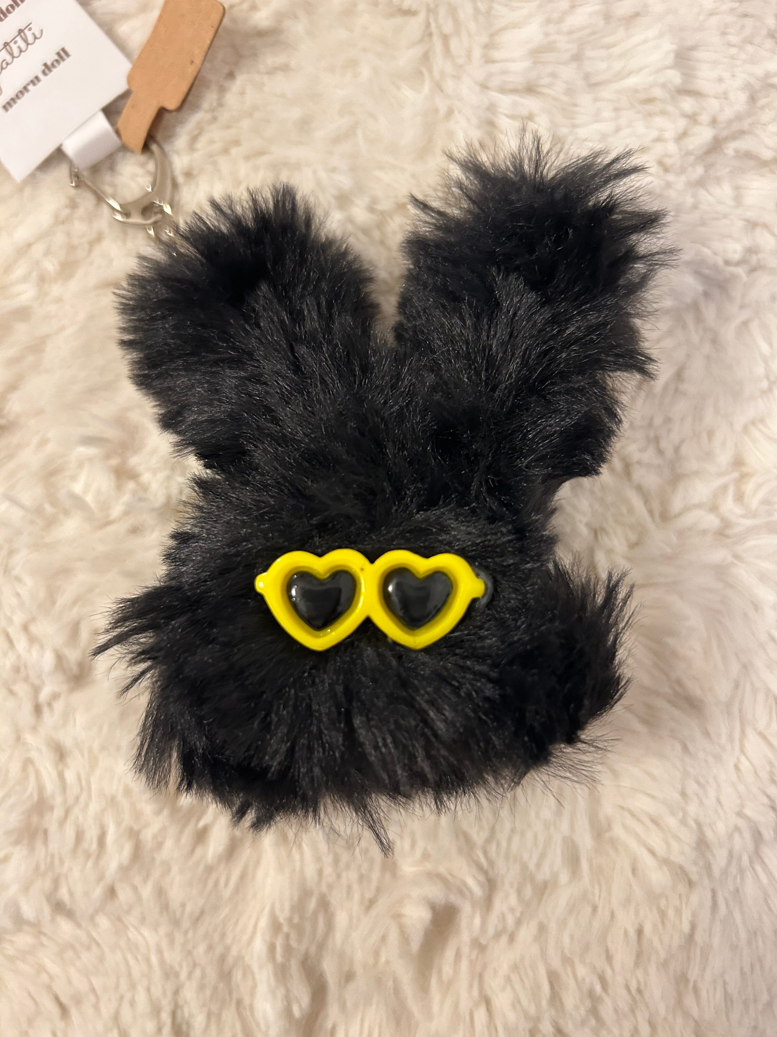 大きめサングラスをしたチャラうさぎちゃんです。 3色からお選びいただけます。 かばんなどに取り付けられるキーホルダー付きです。 *パーツの変更はできませんのでご了承ください。