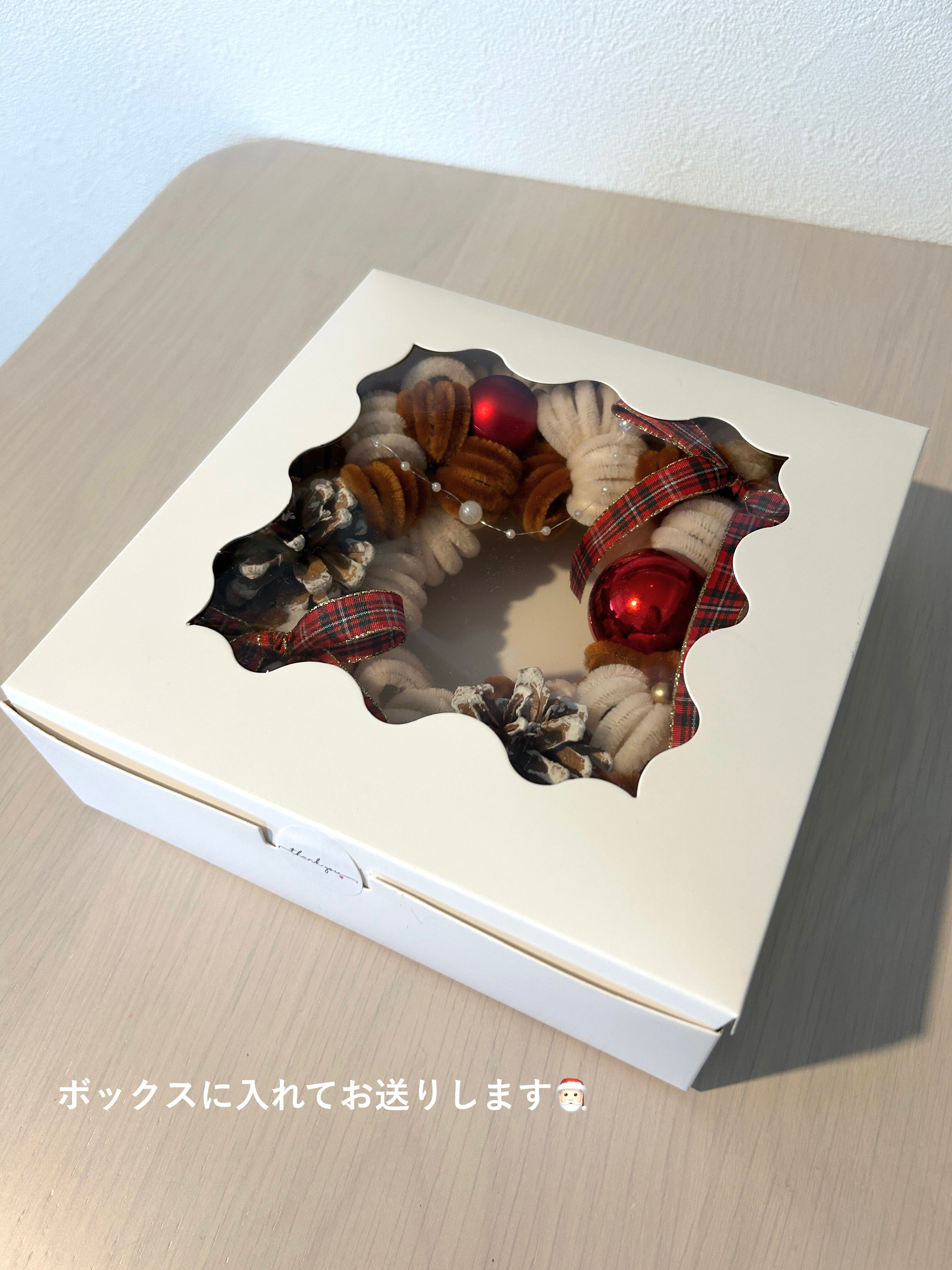オーナメントや松ぼっくりをたっぷり埋め込んだ、きらきら可愛い一品です。