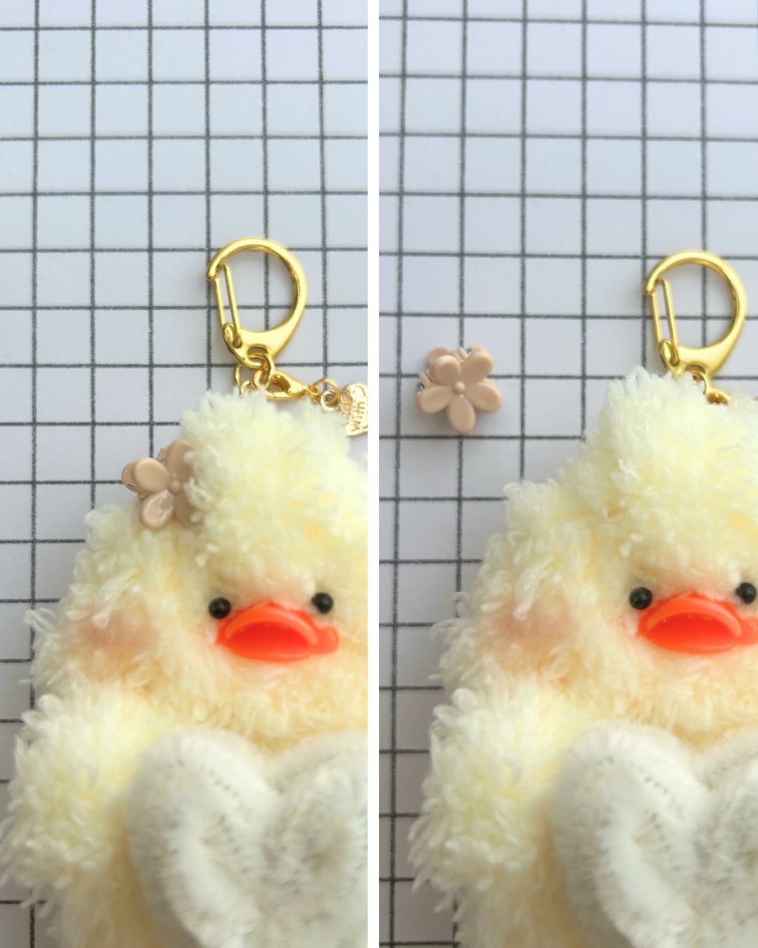 お花クリップをつけた、ハートハグあひるちゃんです。